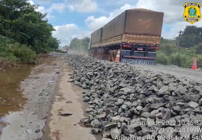 A interdição na BR-364 continua, mas de forma parcial. Segundo a Polícia Rodoviária Federal (PRF), o avanço das águas do rio Jamari já está quase controlado com as obras de elevação da rodovia.