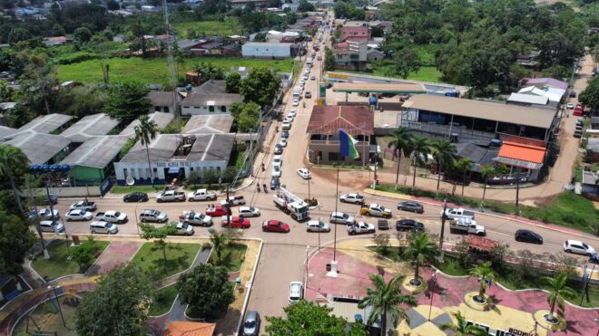 No lado de Epitaciolândia também foram registrados momentos de congestionamento – Foto: Franciarley Andrade