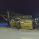 Trator de esteira cai de carreta e interdita parcialmente a BR-364 em Rio Branco