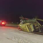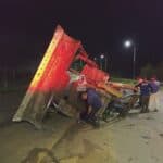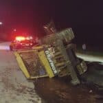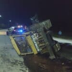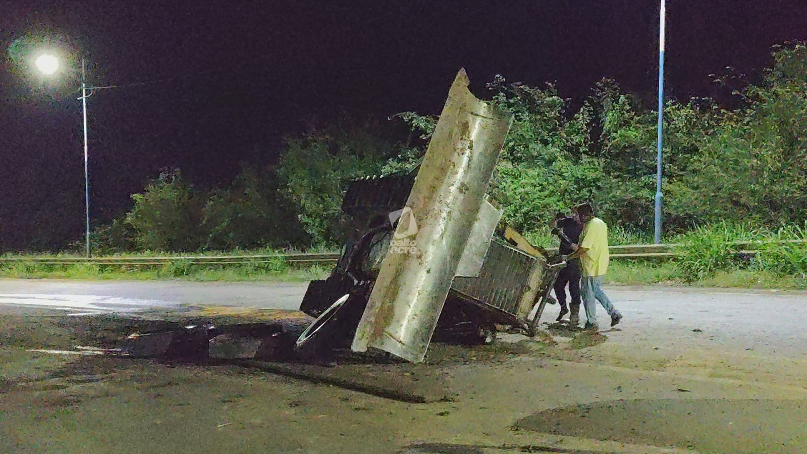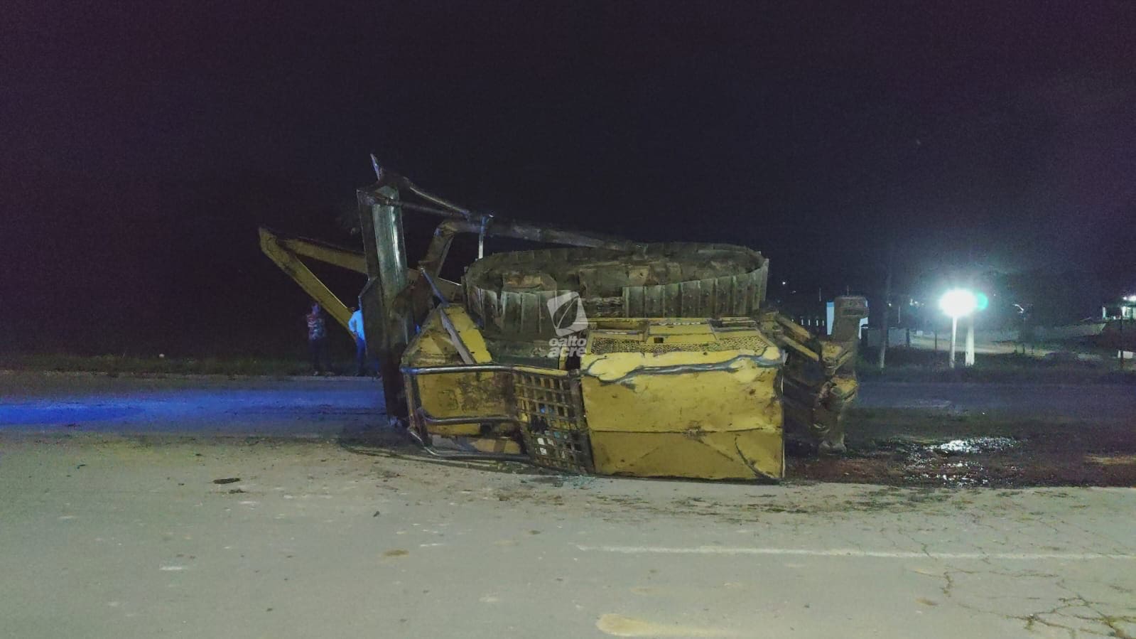 Segundo testemunhas, a carreta modelo Mercedes-Benz Axor, de cor vermelha, seguia da Vila Campinas em direção ao Primeiro Distrito. Ao subir a ladeira após a ponte e realizar uma curva, o trator se desprendeu da prancha e tombou na pista.
