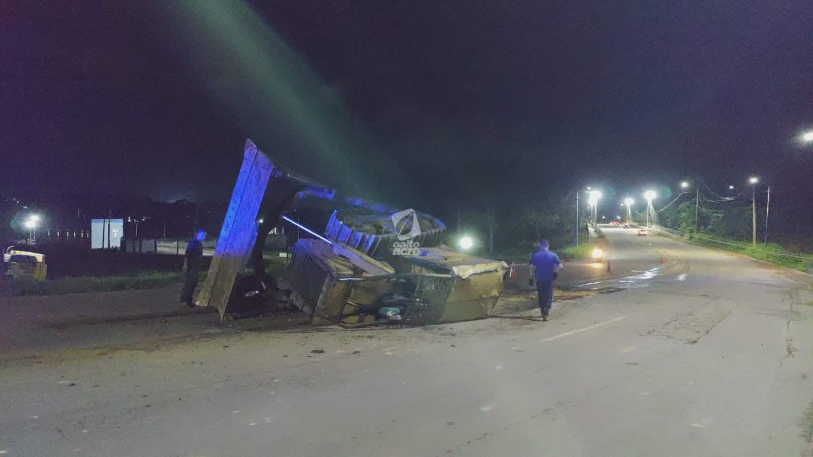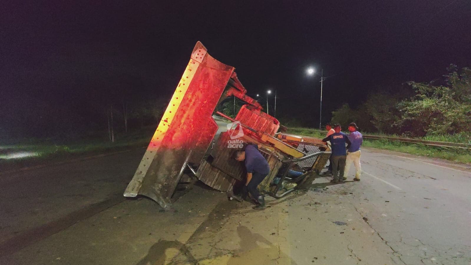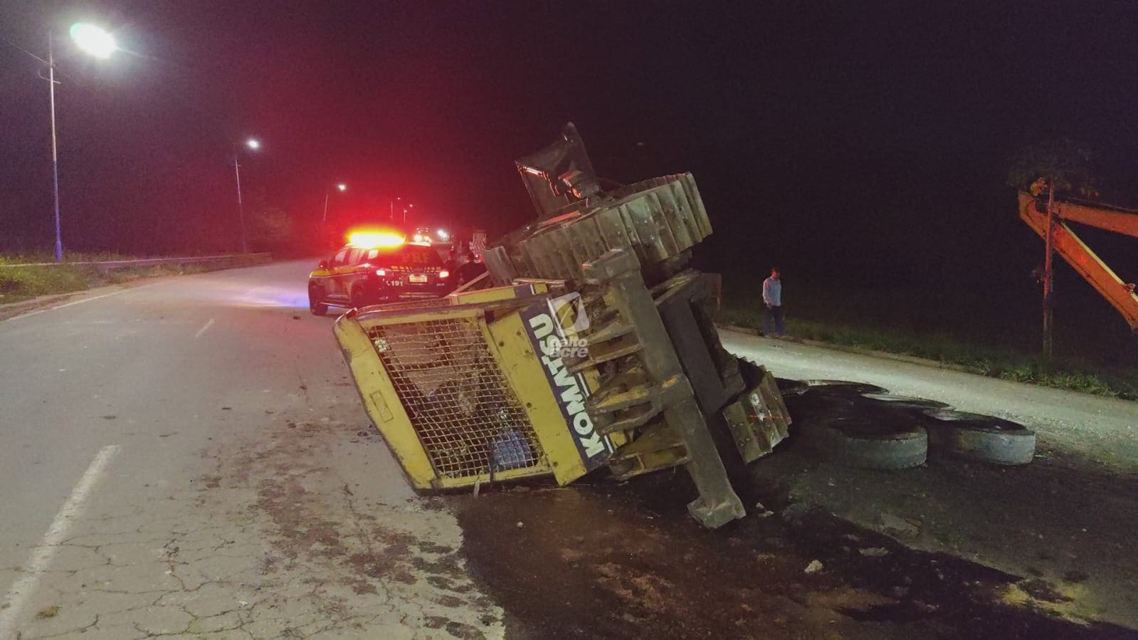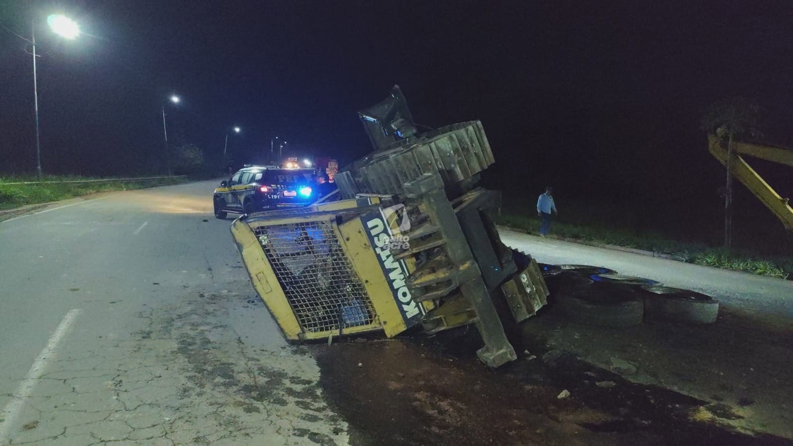 Um trator de esteira caiu de uma carreta prancha e deixou a BR-364 parcialmente interditada na noite desta quarta-feira (12), na Via Verde, nas proximidades da 3ª Ponte, em Rio Branco.