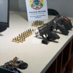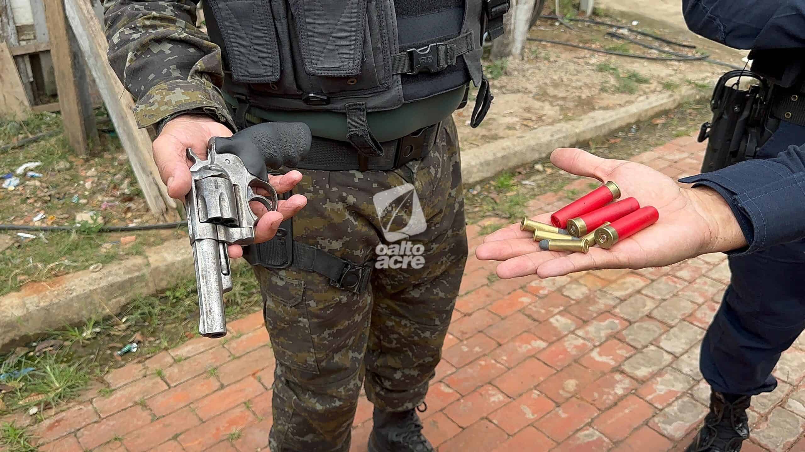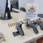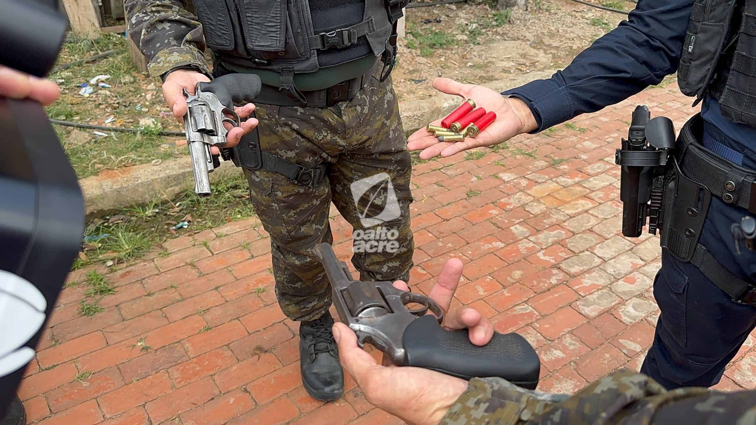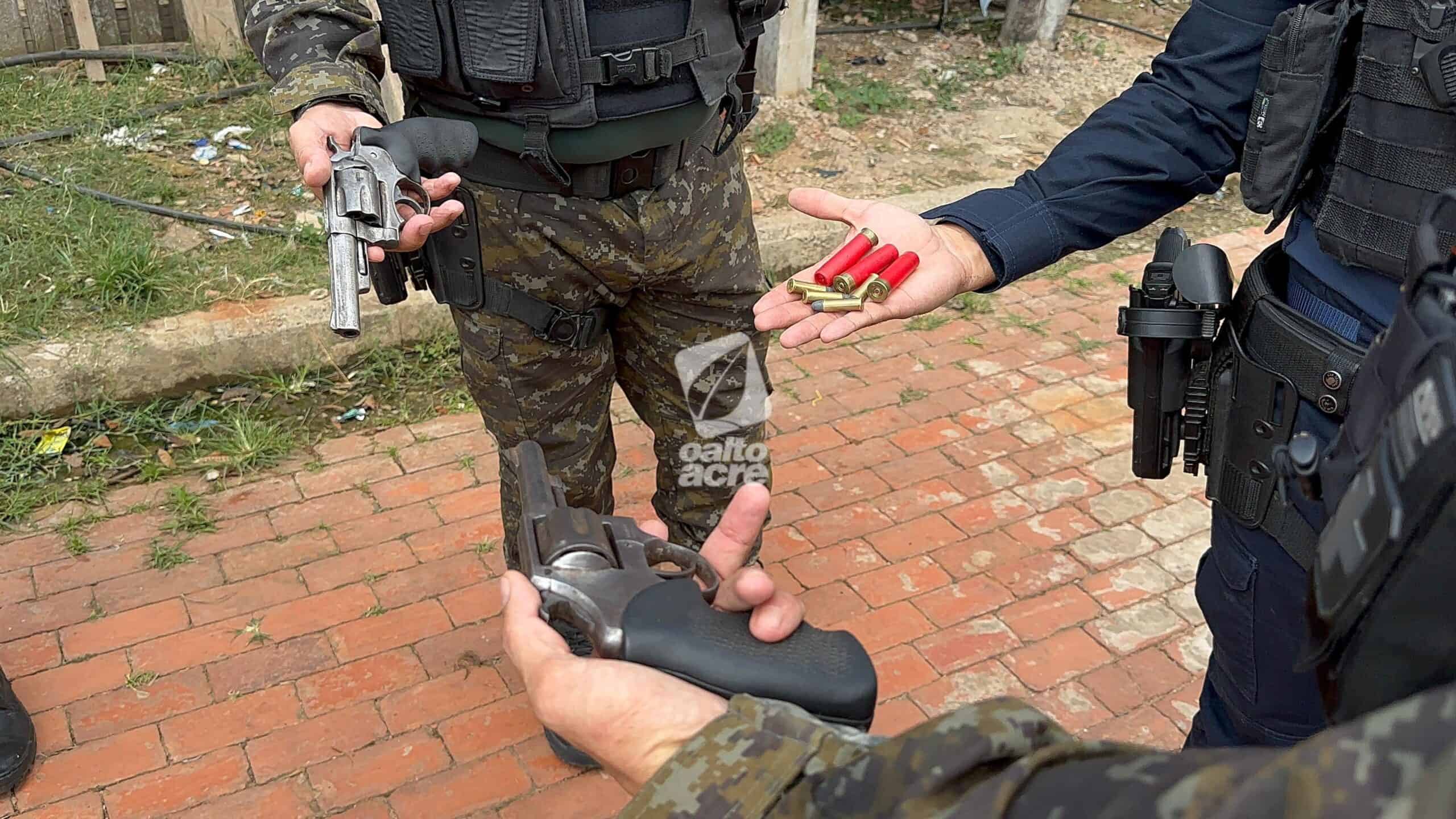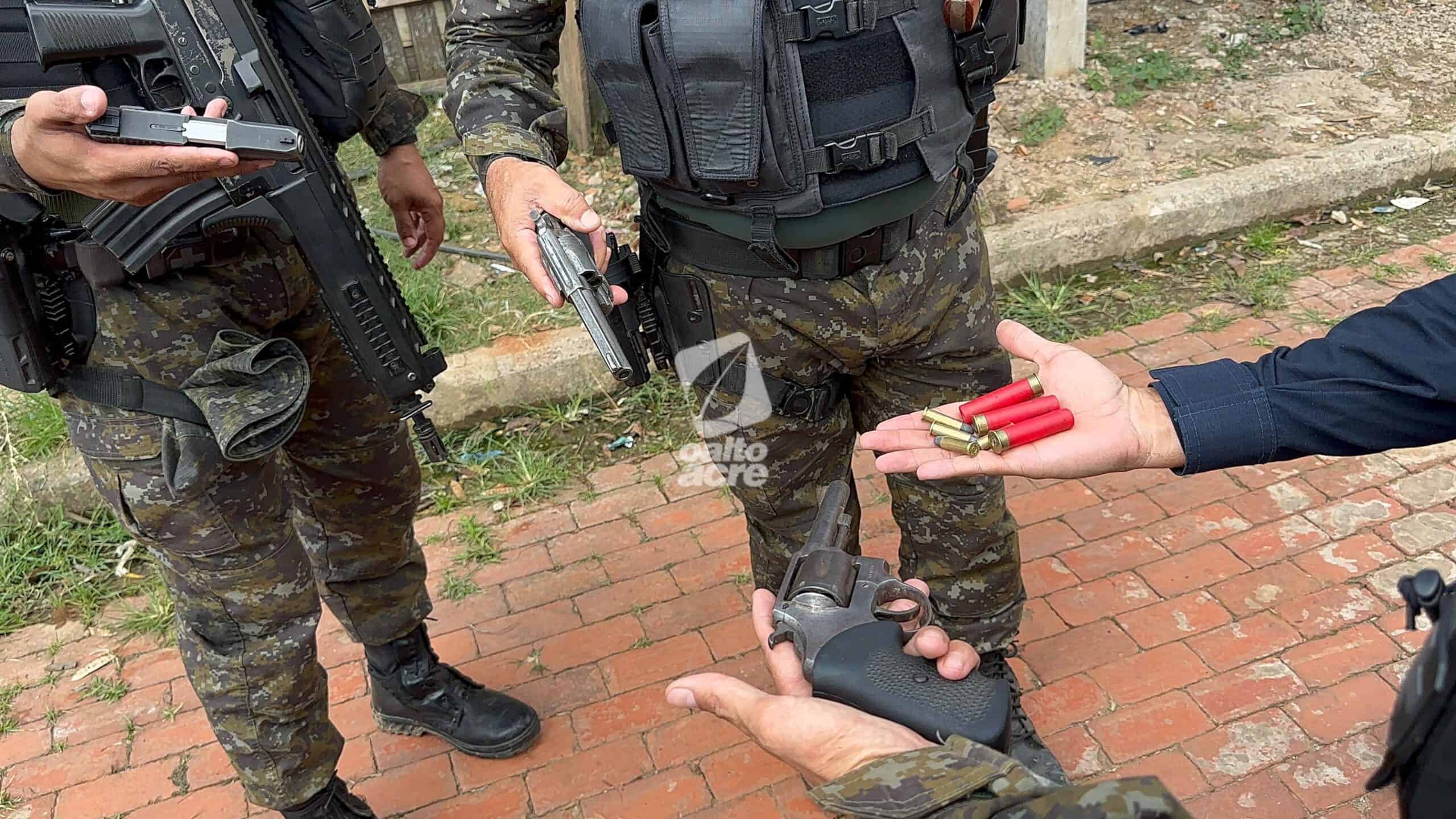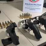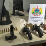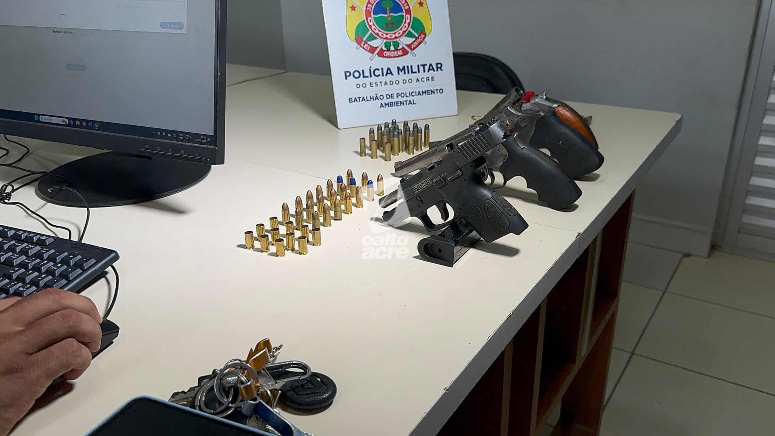 Com eles, foram encontradas uma pistola calibre 9mm, dois revólveres calibre 38, uma garrucha, além de 39 munições intactas e 13 deflagradas.