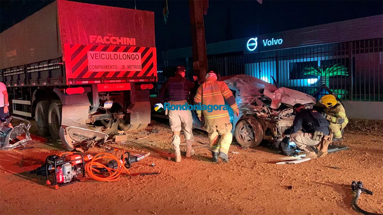 Três pessoas ficaram gravemente feridas, na noite desta quarta-feira (25), após uma colisão entre um carro e uma carreta, na BR-364, perímetro urbano de Porto Velho.