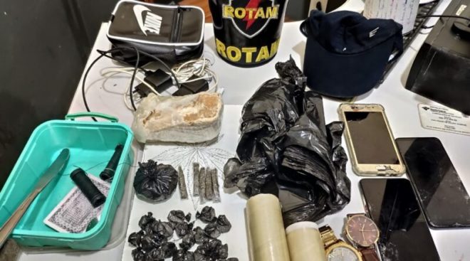 Além do flagrante da droga, um dos detidos estava com mandado de prisão em aberto.