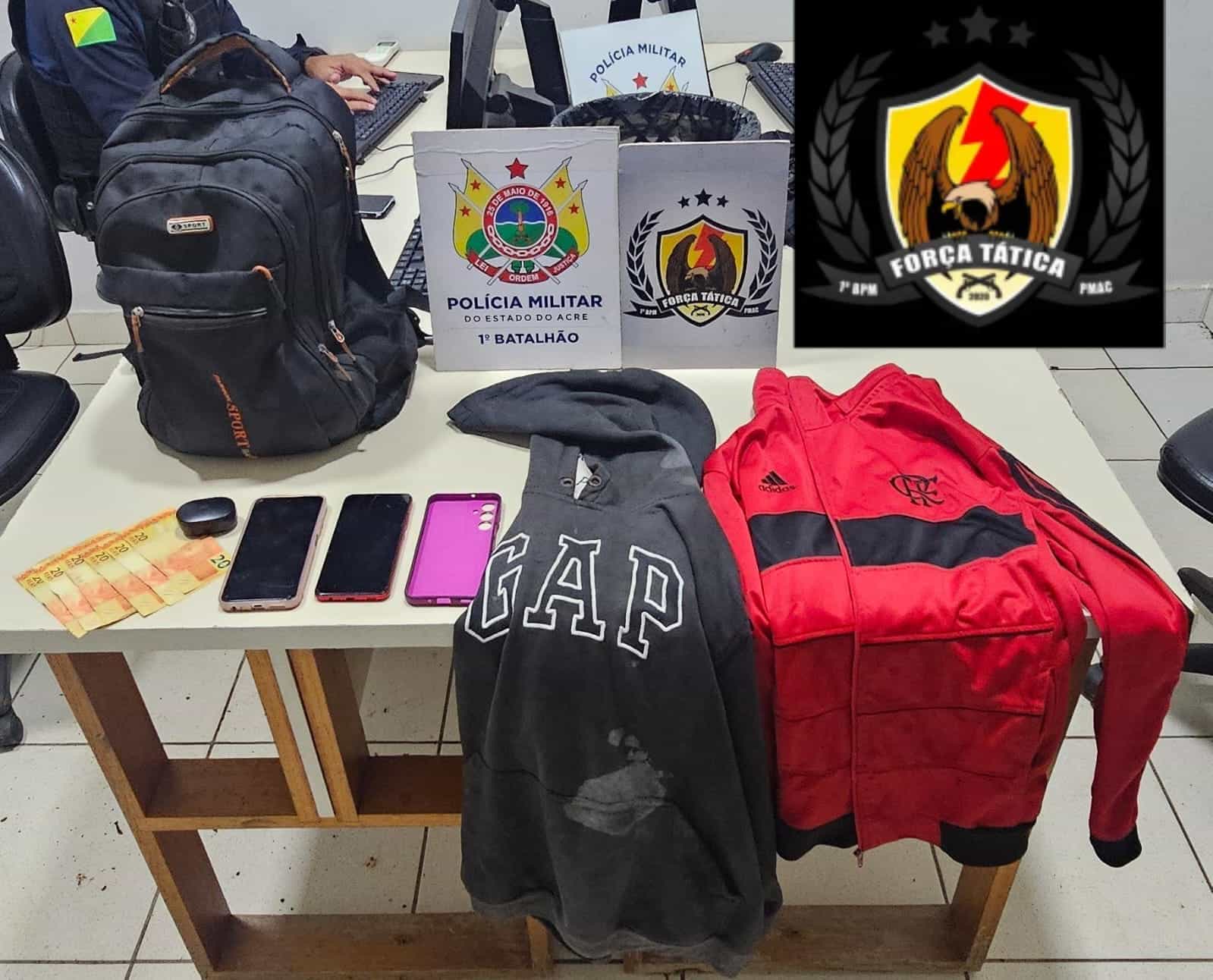 As equipes localizaram uma mochila com roupas usadas no crime e uma capa de celular roxa, reconhecida por uma das vítimas, em um terreno baldio no bairro Castelo Branco. Em seguida, os policiais encontraram e prenderam Valéria e José em um beco na Travessa Érico Veríssimo, no bairro Preventório.