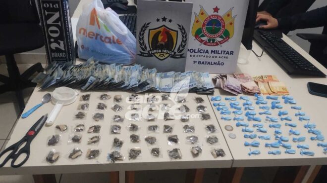 Ao perceber a chegada da polícia, dois homens tentaram fugir pulando janelas e muros, mas um deles foi detido. Dentro da casa, os policiais encontraram os outros dois traficantes, que não conseguiram reagir a tempo. No interior da residência, foram apreendidos 51 papelotes de maconha tipo ‘skunk’, 55 trouxinhas de cocaína, além de um grande volume de materiais relacionados ao embalo de drogas e R$ 610 em dinheiro, supostamente proveniente do tráfico de entorpecentes.