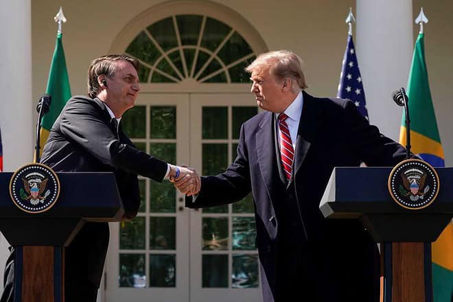 “Como disse ao presidente [Jair] Bolsonaro, vou designar o Brasil como principal aliado que não é da Otan, e até possivelmente um aliado da Otan. Falei com muitas pessoas a respeito disso. Nossas nações trabalham juntas para proteger os nossos povos do terrorismo, do crime transnacional, das drogas, do tráfico de armas e de pessoas, que está agora na vanguarda do crime”, disse.