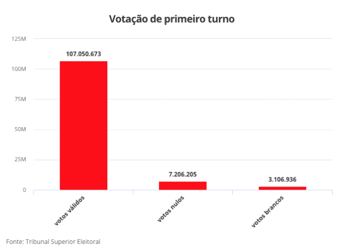 O Tribunal Superior Eleitoral (TSE) divulgou na manhã desta terça-feira (9) os números consolidados da votação de 1º turno nas eleições deste ano, com todas as urnas apuradas.