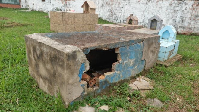 Um homem ainda não identificado, vem sendo o principal suspeito de praticar vandalismo, furtos e destruição de túmulos no cemitério municipal de Brasiléia. Vários jazigos foram depredados e uma das cenas foi presenciada por um morador nesta terça-feira, dia 17.