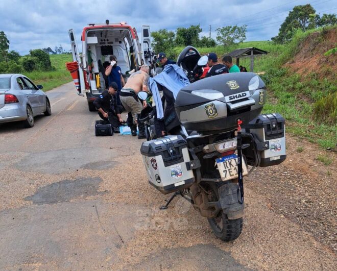 O homem (não identificado) perdeu o controle da moto modelo Honda de grande cilindrada e caiu na estrada. Na queda, o motociclista quebrou a perna próximo ao tornozelo esquerdo, causando uma fratura exposta. Os colegas rapidamente pararam para prestar ajuda e pedir apoio de uma ambulância.