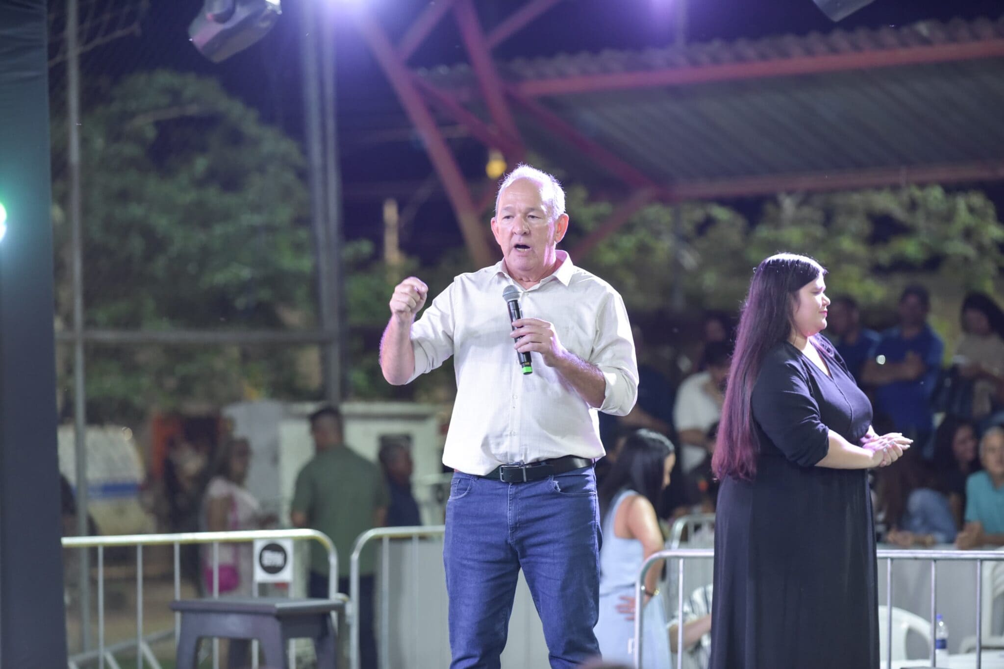 Ao lado do governador, Mailza agradeceu a presença da população. Foto: Raylanderson Frota/Secom
