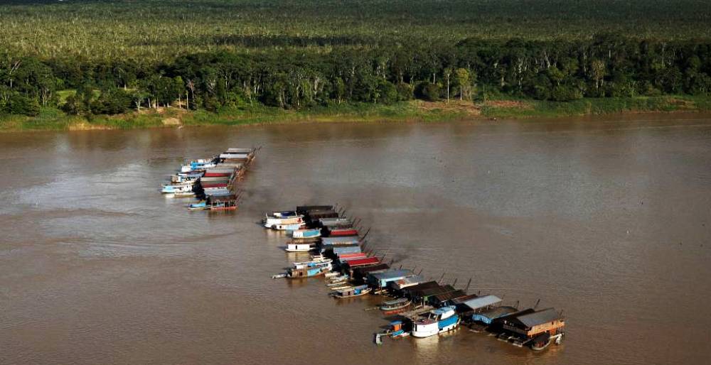 Balsas de exploração de ouro no Rio Madeira: pesquisadores identificam alta concentração de mercúrio em peixes (Imagem: Redes sociais/Divulgação)