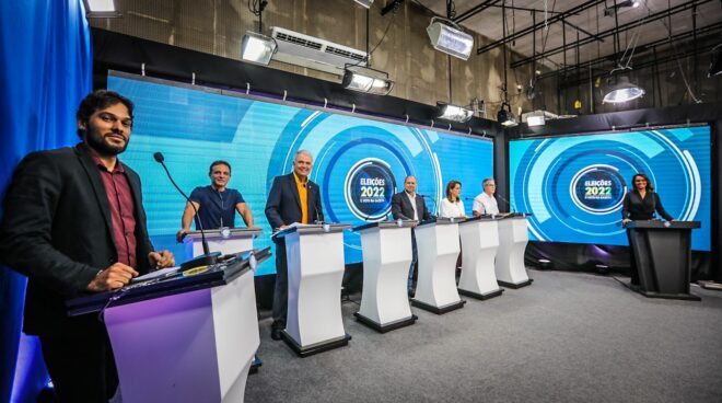 O último debate entre candidatos ao governo do Acre realizado durante o 1º turno das eleições 2022 pela TV Gazeta, afiliada à Record, ocorreu na tarde desta quinta-feira, 29, e trouxe embates calorosos entre Jorge Viana (PT) e Mara Rocha (PSDB), além de críticas dos seis participantes pela ausência do governador candidato à reeleição, Gladson Cameli (Progressistas).