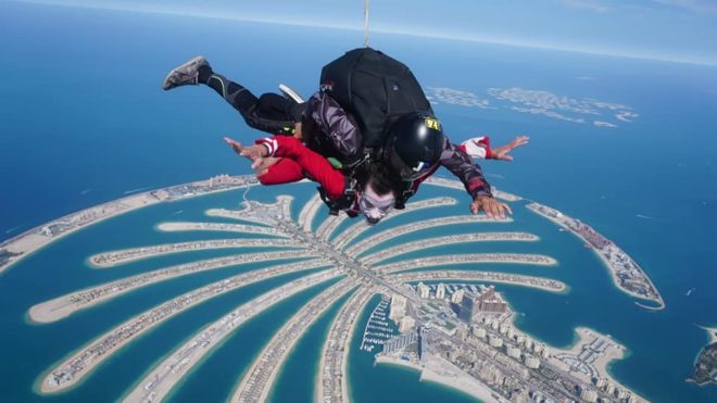 O personagem que vem interpretando no Theatro de Bunecos, o Coringa, já fez uma grande apresentação nas alturas, literalmente, nesta semana quando saltou de paraquedas sobre a cidade, onde pode ver as belezas que vem surgindo no deserto.