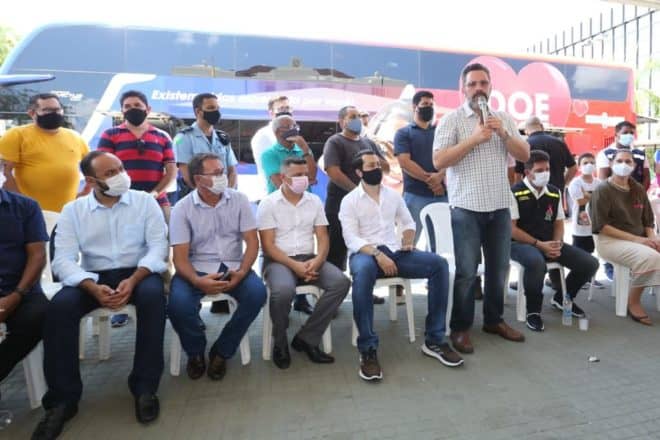 O deputado federal Alan Rick (DEM), juntamente com o governador Gladson Cameli, a secretária de Estado de Saúde, Paula Mariano, e equipe do Hemoacre entregaram nesta sexta-feira, 1º de outubro, o novo ônibus ao Centro de Hematologia e Hemoterapia do Acre – Hemoacre. O Hemóvel foi adquirido por meio de emenda individual do parlamentar no valor de R$ 1,5 milhão.
