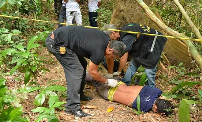 Quando chegaram, constataram que havia oito no local. ao perceberem a presença de policiais, sacaram de armas e iniciaram uma troca de tiros contra os policiais e entrar na mata.