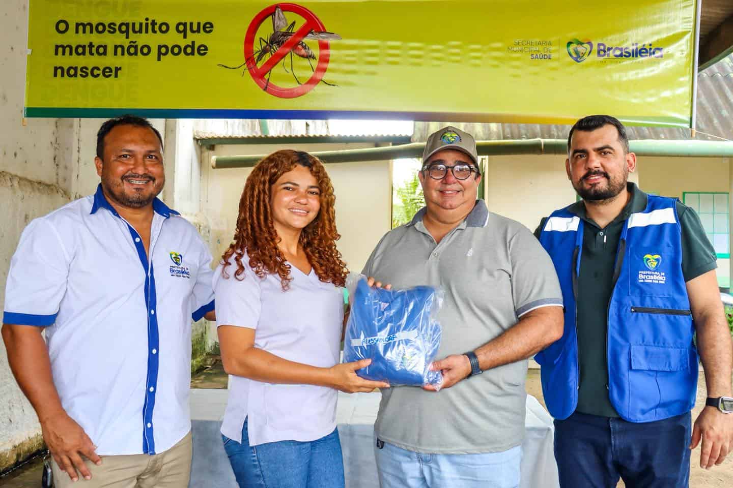 A Prefeitura de Brasiléia realizou, na manhã desta segunda-feira (26), a entrega de kits de trabalho aos agentes de endemias do município. A ação contou com a presença do prefeito Carlinhos do Pelado, do secretário municipal de Saúde, Francelio Barbosa, e de integrantes da equipe da pasta.