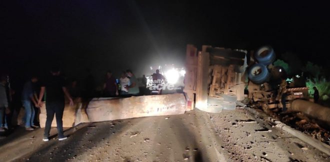 Um acidente envolvendo uma carreta de transporte de madeira tombou na BR 317, no início da noite desta quinta-feira, dia 15. O motorista morreu entre as ferragens da cabine.