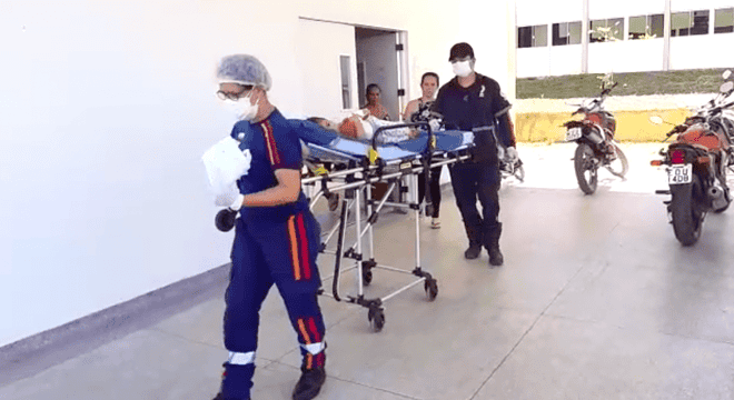 Criança saiu por outro lado do hospital para ser embarcada na ambulância e ser levada para a Capital.