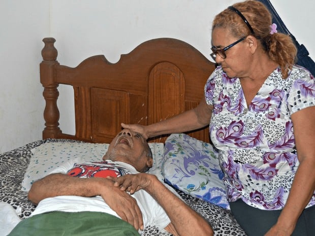 Arlete abandonou o ofício de costureira e cuida, há 28 anos, do marido Sebastião que não fala e não anda (Foto: Tácita Muniz/G1)