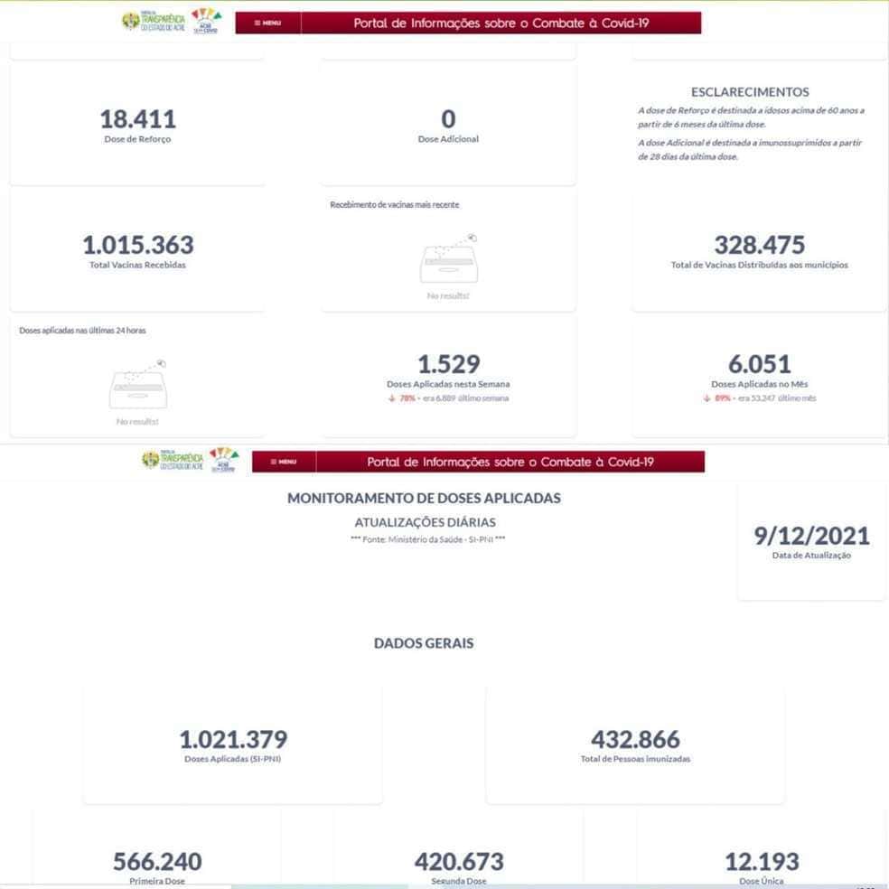 Após falha em sistema, painel da vacinação do Acre segue sem atualização desde de 9 de dezembro.