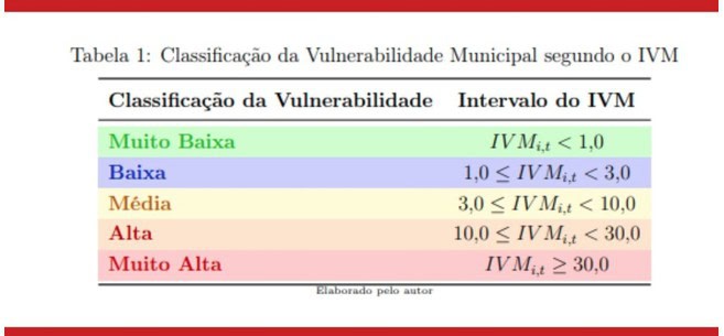 Tabela demonstra como é medida a vulnerabilidade municipal . Foto: Reprodução/Dr. Rubicleis G. Silva