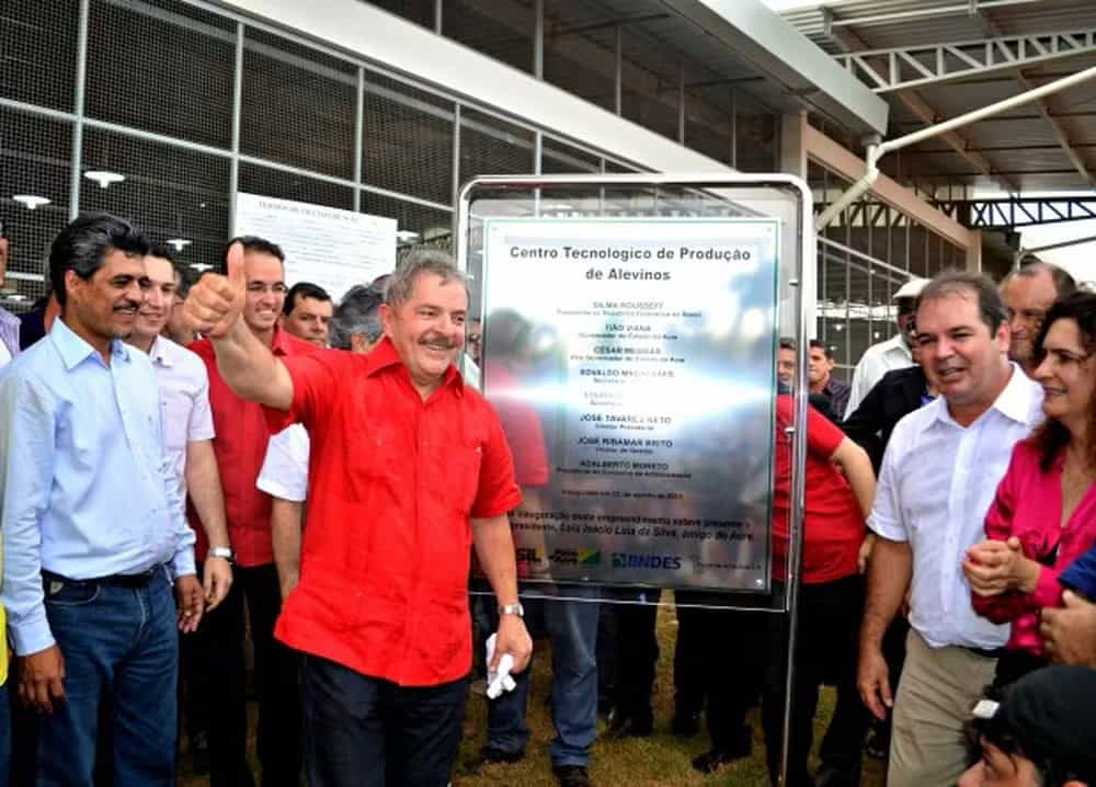 Lula esteve na inauguração do Complexo de Piscicultura em 2013 — Foto: Rayssa Natani / G1