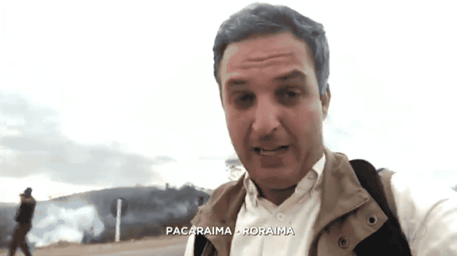 mostra conflito entre policiais e venezuelanos na fronteira do país