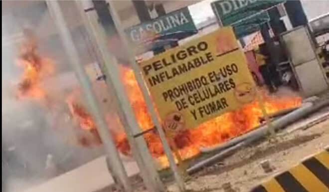 Uma motocicleta boliviana estava sendo abastecida quando pegou fogo no posto de gasolina na cidade de Cobija, capital do estado de Pando/Bolívia, por volta das 12h00 desta terça-feira, dia08.