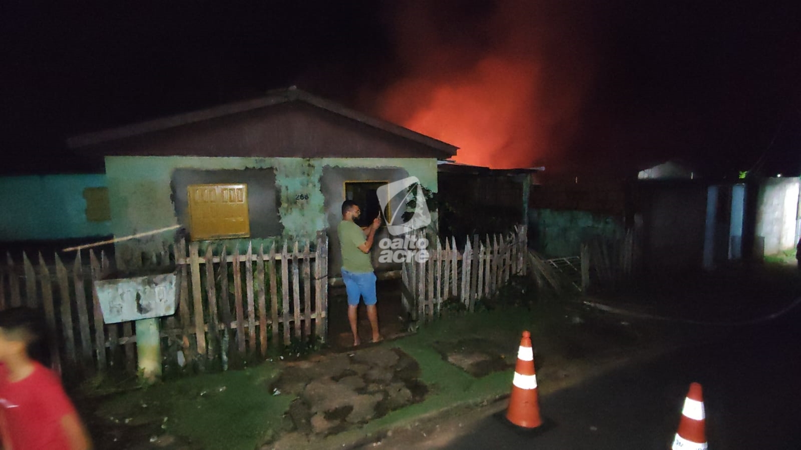 Incêndio destrói casa de madeira e atinge residência vizinha em Rio Branco
