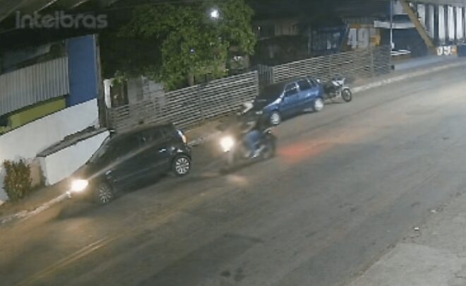 Parte da ação criminosa foi registrada por câmeras de monitoramento da região. Nas imagens é possível ver quando o bando cruza a rua Rio de Janeiro.