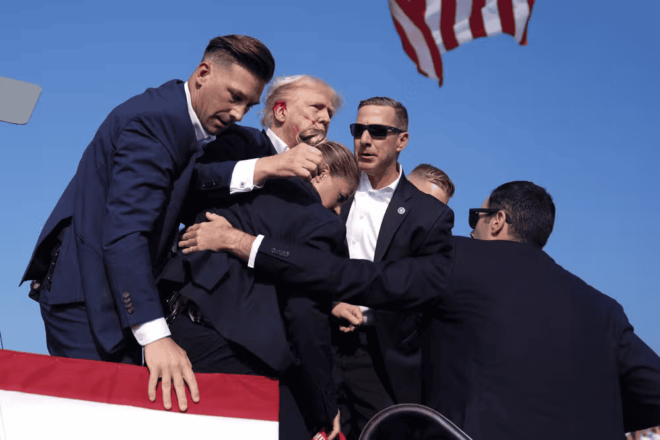 Agentes do serviço secreto subiram no palco e retiraram o ex-presidente, escoltando-o até um carro. Trump saiu do palco erguendo o punho, em um gesto para demonstrar força, enquanto o público ao seu redor gritava “USA! USA!” (sigla em inglês para EUA). A foto desse momento está sendo repostada por aliados e apoiadores nas redes sociais.