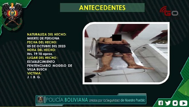 Em 5 de outubro, um incidente grave ocorreu no Estádio Penitenciário Villa Buche, na cidade de Cobija, Bolívia, que resultou na morte de um detento venezuelano de 30 anos chamado Jean-Yves Marcelo Gil. Segundo informações da Direção Departamental de Regimes Penitenciários e do Diretor de Segurança da prisão, o incidente aconteceu por volta das 19h15.