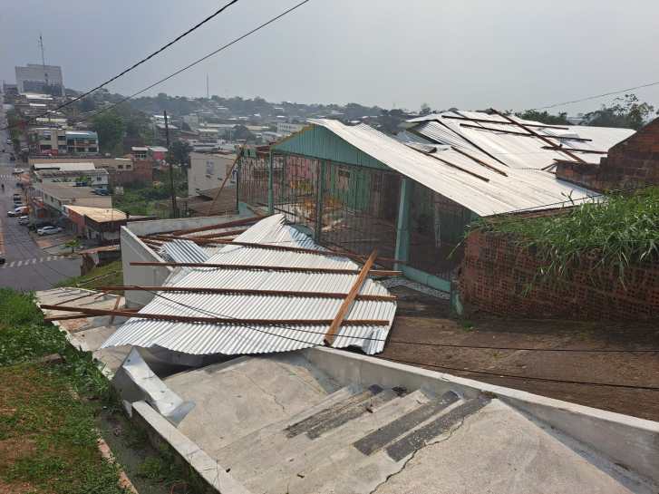 Ventania causa destelhamentos e arranca árvores em Cruzeiro do Sul