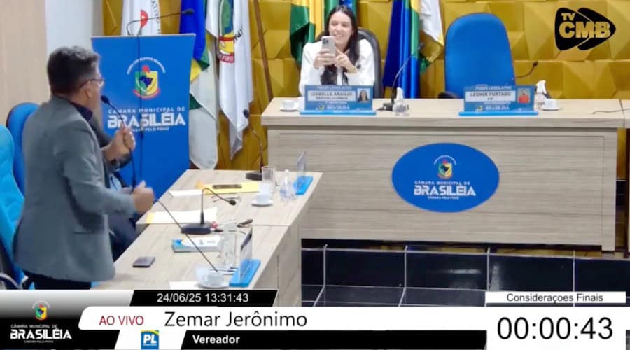 A sessão ordinária da Câmara Municipal de Brasiléia, realizada na terça-feira (24), foi marcada por tensão e troca de acusações entre parlamentares. O vereador Zemar Jerônimo, do Partido Liberal (PL), usou os cinco minutos finais da reunião legislativa para acusar um assessor de sua colega, vereadora Izabelle Araújo (Republicanos), de tentar difamar sua imagem.