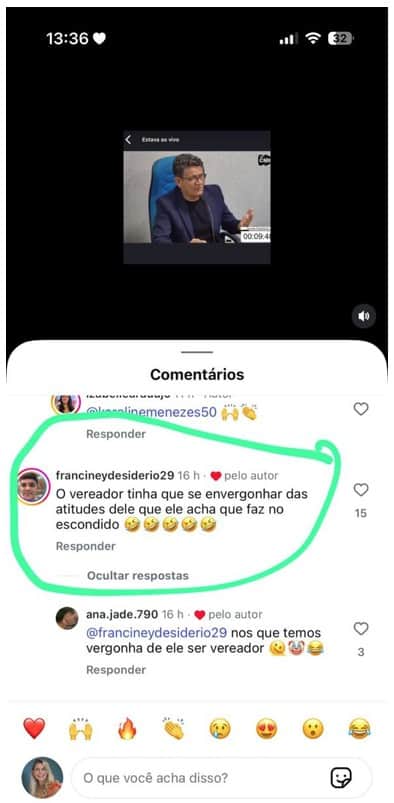 Veja os prints disponibilizados pelo Vereador e entrevista.