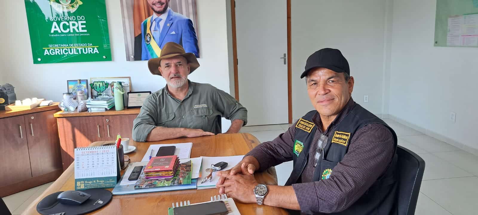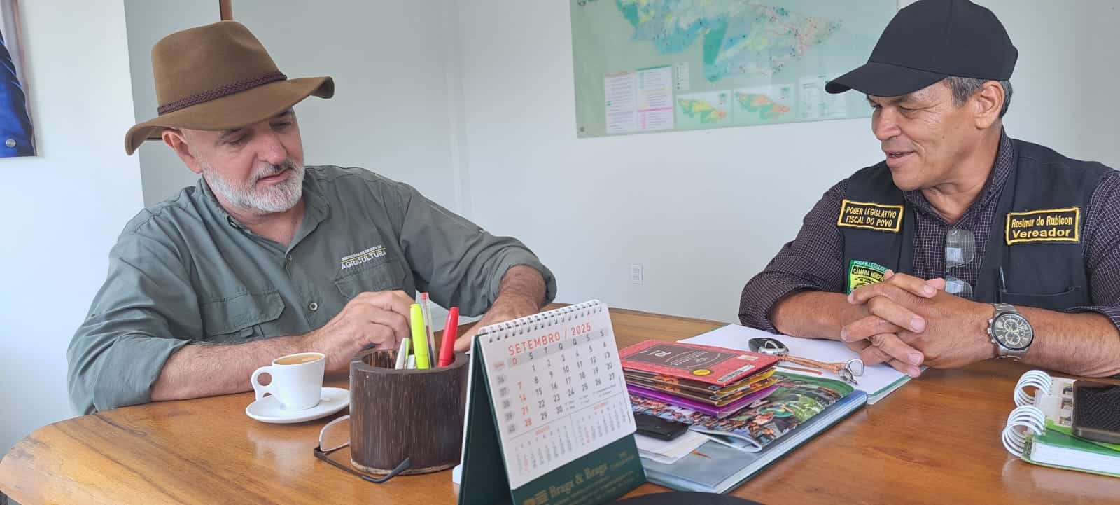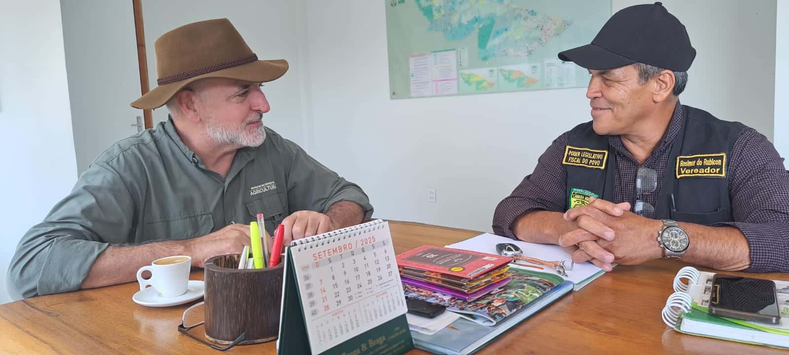 Rosimar do Rubicon (Republicanos) reforçou pedidos de apoio a pequenos produtores durante encontro com o secretário de Agricultura, José Luís Schafer; agenda no Alto Acre está prevista para o segundo semestre