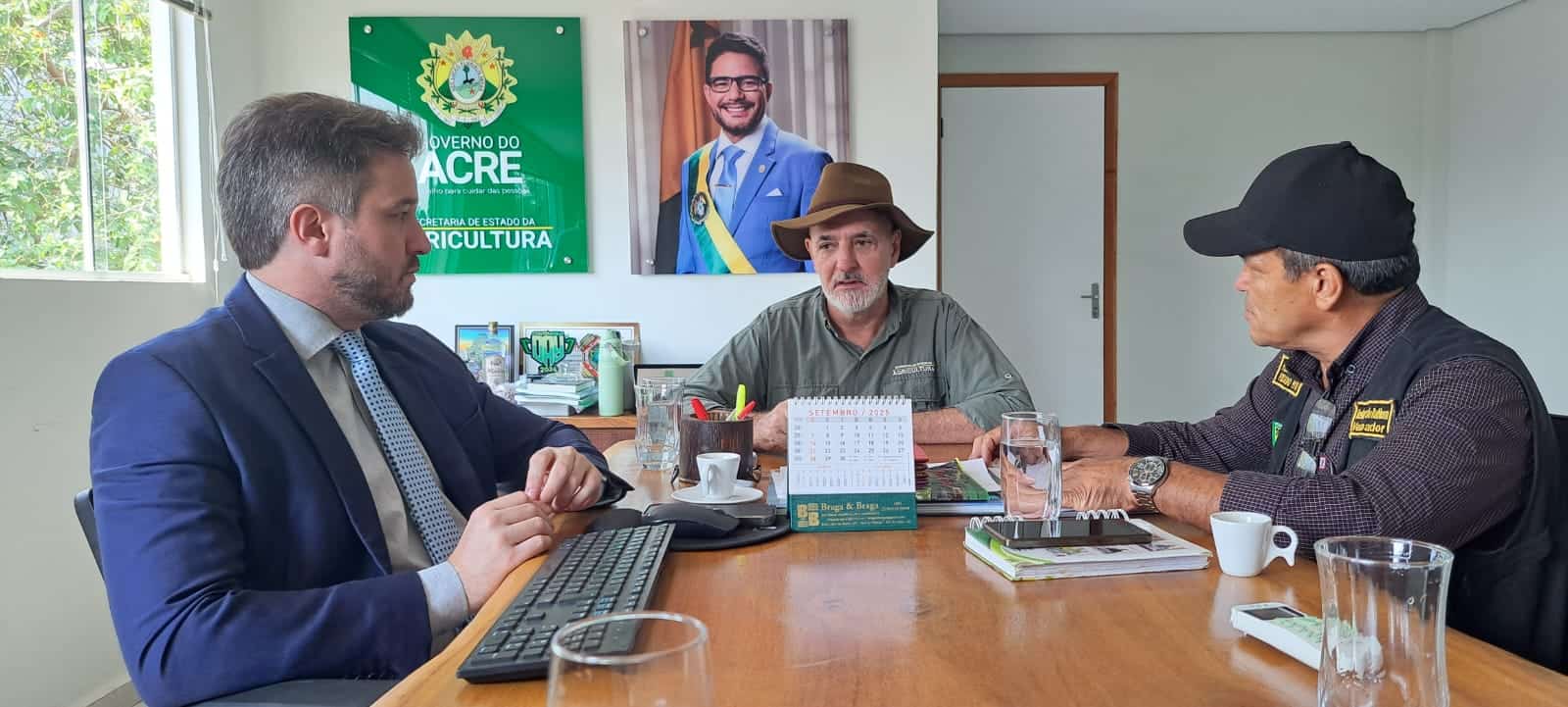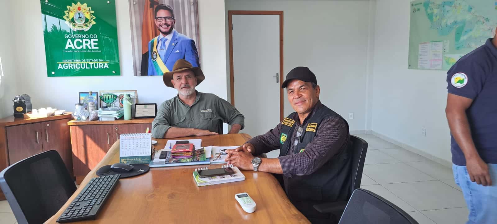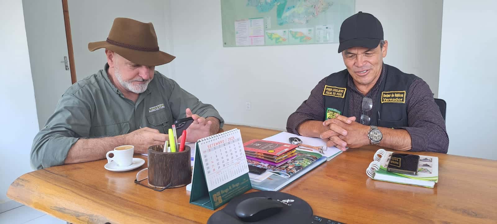 Rosimar do Rubicon (Republicanos) reforçou pedidos de apoio a pequenos produtores durante encontro com o secretário de Agricultura, José Luís Schafer; agenda no Alto Acre está prevista para o segundo semestre