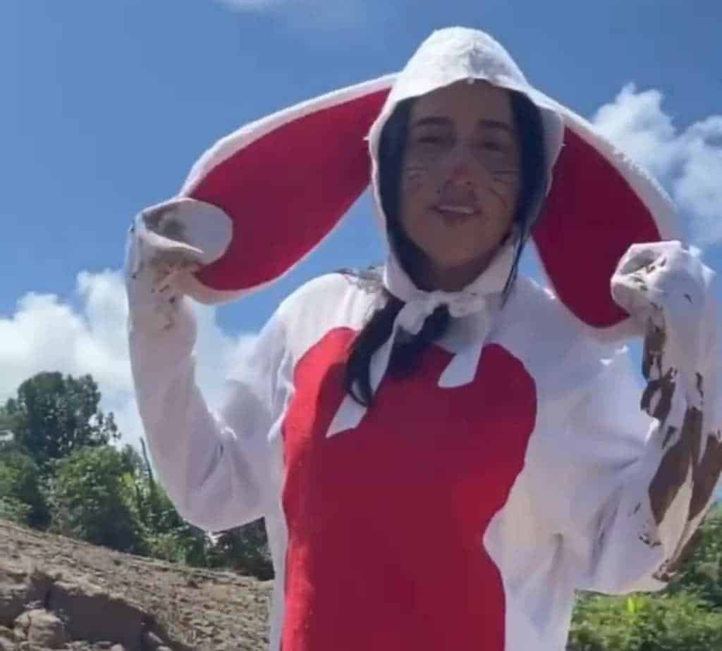 Vereadora de Porto Walter se veste de coelha e navega de canoa para levar ovos de Páscoa a ribeirinhos; veja vídeo