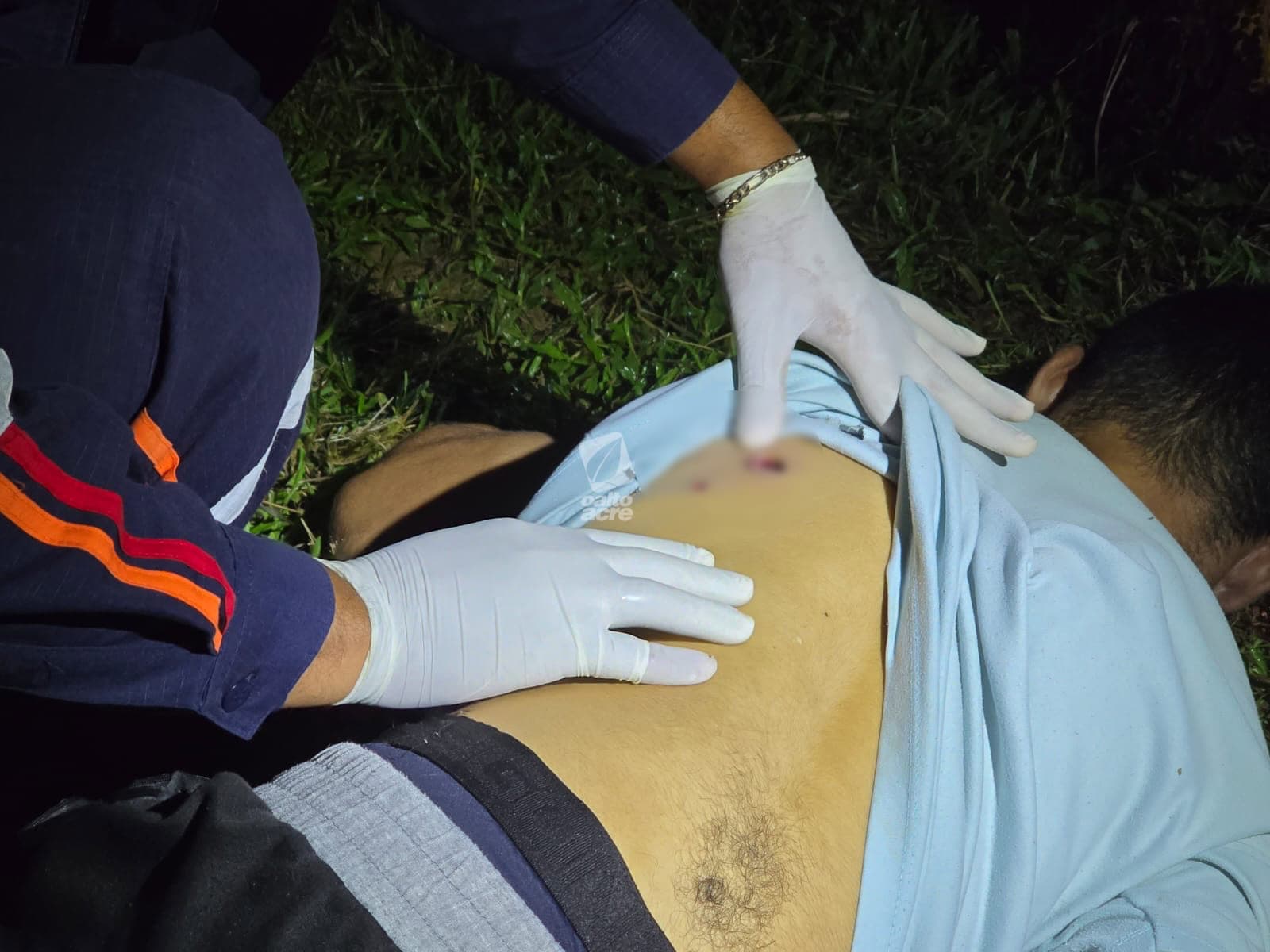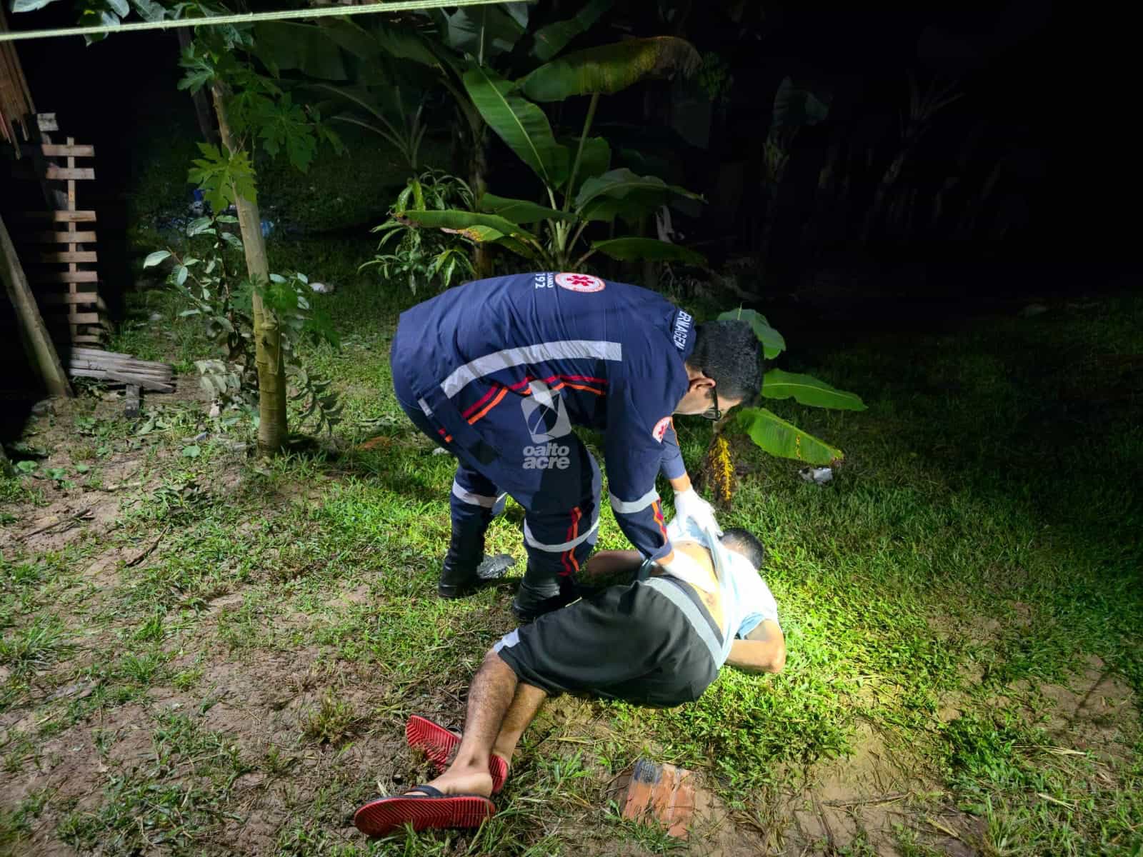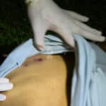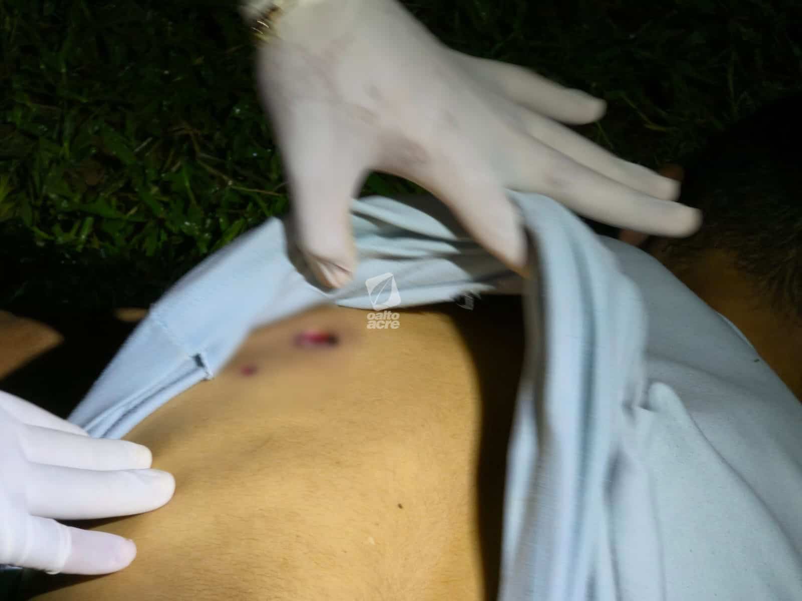 Um dos tiros atingiu a perna do suspeito, na altura da canela, provocando fratura em um dos ossos. Após ser ferido, ele largou a faca, foi contido, algemado e recebeu atendimento inicial ainda no local.