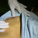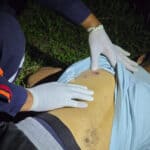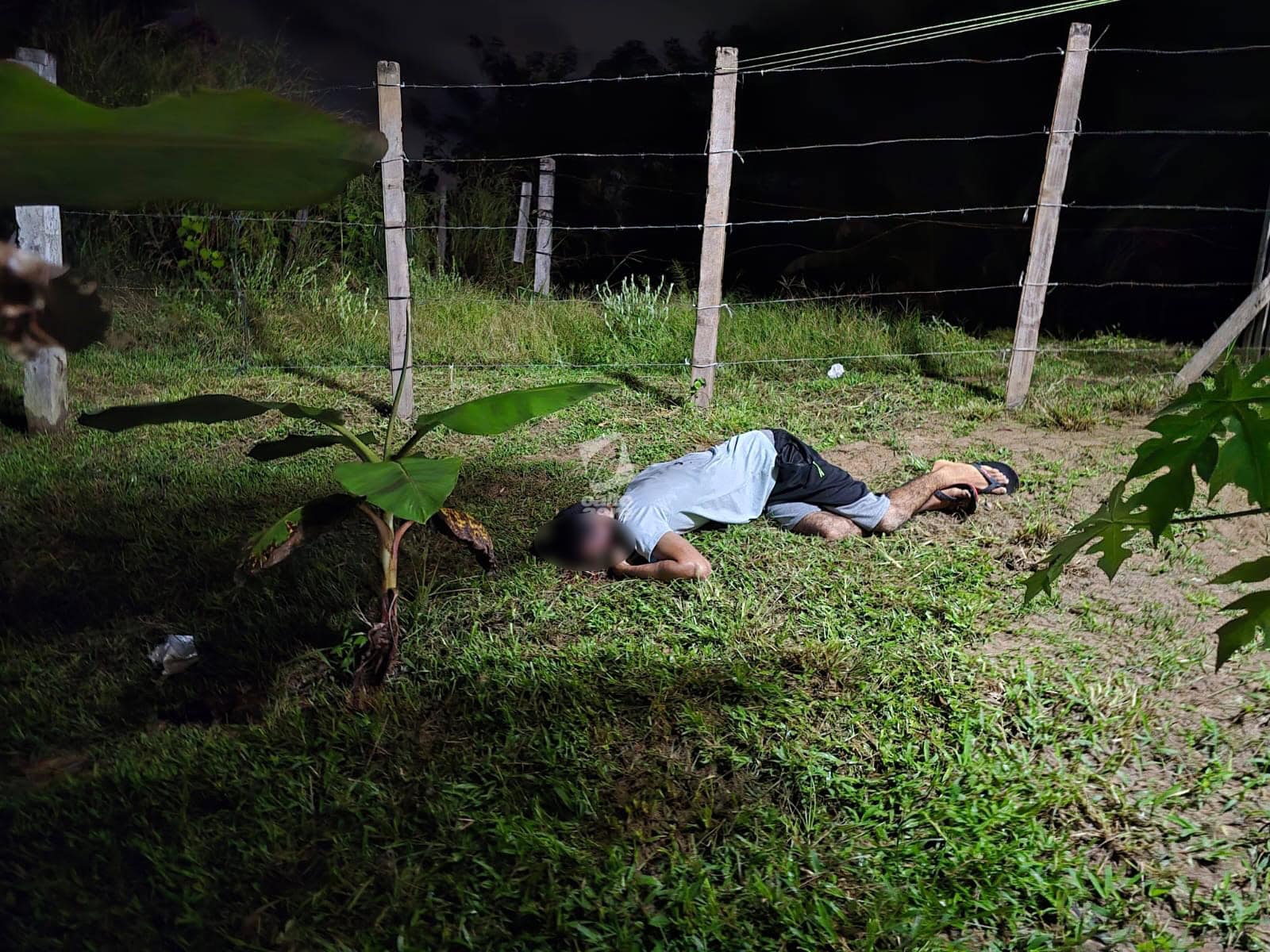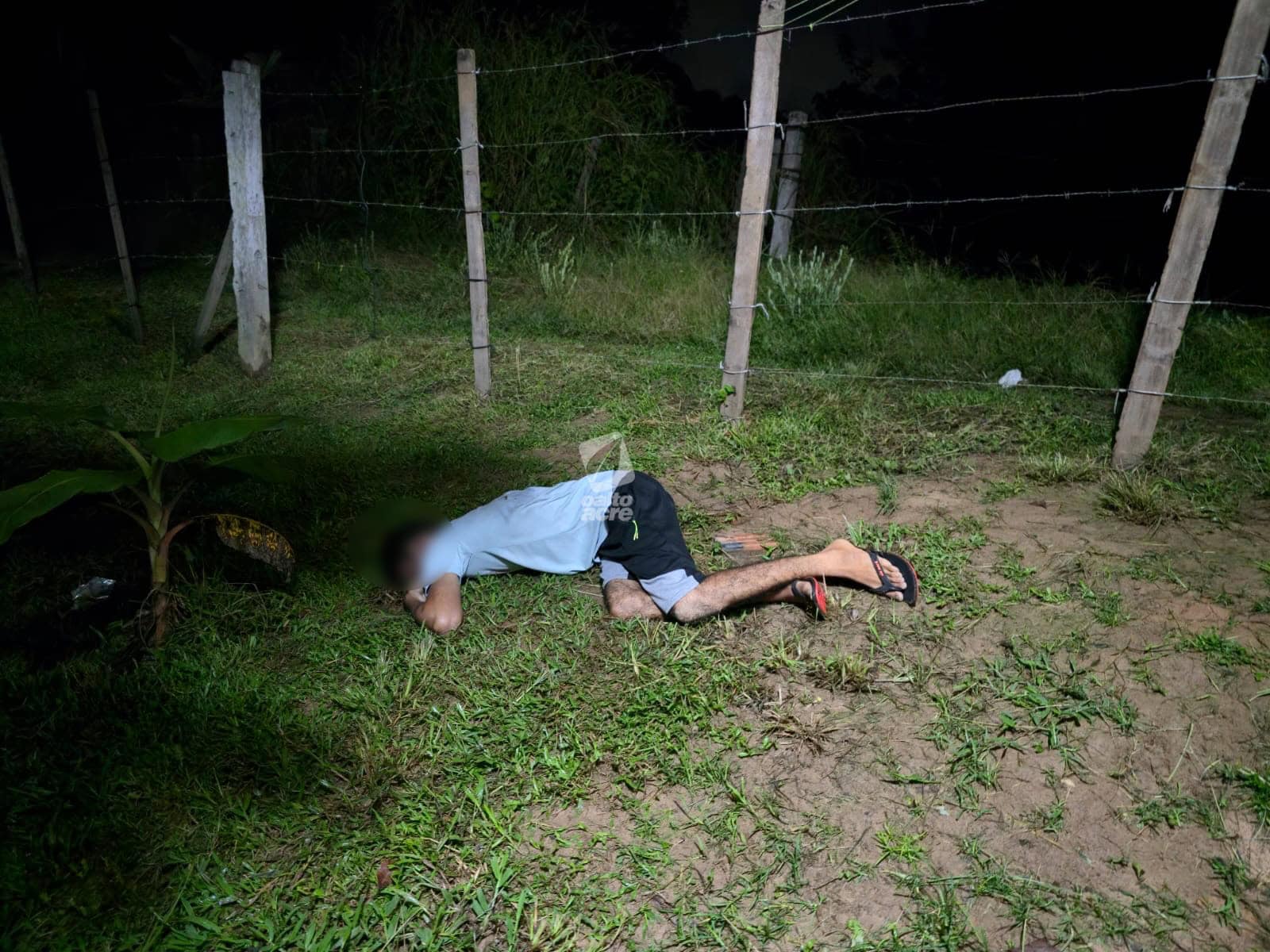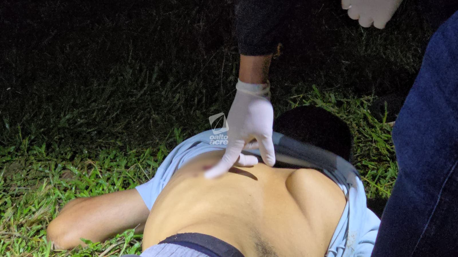 Um dos tiros atingiu a perna do suspeito, na altura da canela, provocando fratura em um dos ossos. Após ser ferido, ele largou a faca, foi contido, algemado e recebeu atendimento inicial ainda no local.