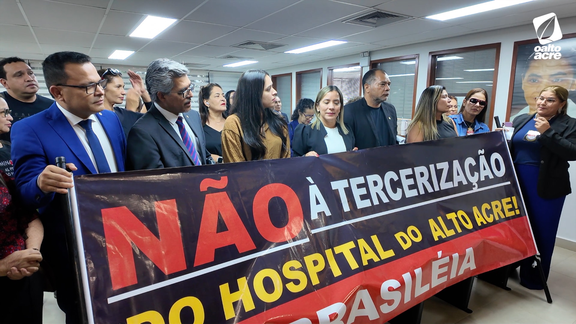 Vereadores de Brasiléia acompanham servidores na Aleac contra terceirização de hospital