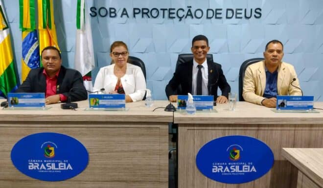 Na manhã desta terça-feira (6), foi realizada a décima sétima Sessão Ordinária de 2023 da 15ª Legislatura da Câmara Municipal de Brasiléia na sala de sessões José Cordeiro Barbosa e contou com a presença dos vereadores Arlete Amaral (PP), Elenilson Cruz (Sem Partido), Leomar Barbosa (PSD), Lessandro Jorge (Sem Partido), Jurandir Queiroz (PROS), Marinete Mesquita (PT), Neiva Badotti (PSB), Reinaldo Gadelha (MDB), Rogerio Pontes (PROS) e o Presidente Marquinhos Tibúrcio (MDB).
