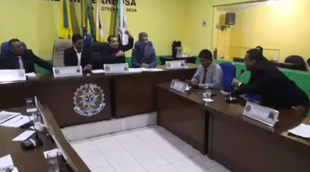 Foi quando o presidente da Casa, Rogério Pontes (MDB) e que é da base da prefeitura, tentou interver na fala do vereador oposicionista. Foi quando iniciou outra discurssão ao ponto dos edis baterem na mesa.
