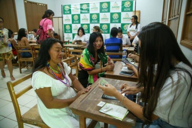 Na última edição realizada em Feijó, a indígena Branca Kulina saiu da Aldeia Terra Nova, acompanhada do marido e de dois filhos pequenos, em busca de emitir a certidão de nascimento e o CPF dos membros da família.
