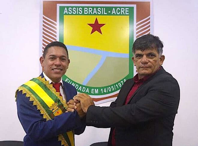 Prefeito Jerry Coreia e o vice Reginaldo Martins no dia da posse. Ambos foram contaminados e estão de quarentena – Foto: arquivo/secom