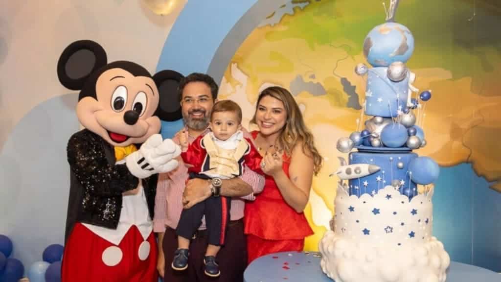 Em um espaço cheio encanto chamado de “O mundo fantástico de Vicente Viana”, os pais Ana Helena e Vicente Viana celebraram o primeiro ano de vida do filho na noite desta quarta-feira (30/5), na casa de festa Catavento Lago, na Asa Sul, em Brasília. No ambiente cheio de magia, que fez alusão ao “Fantástico Mundo de Bobby, uma presença especial trouxe ainda mais alegria: o amado personagem da Disney, Mickey Mouse.