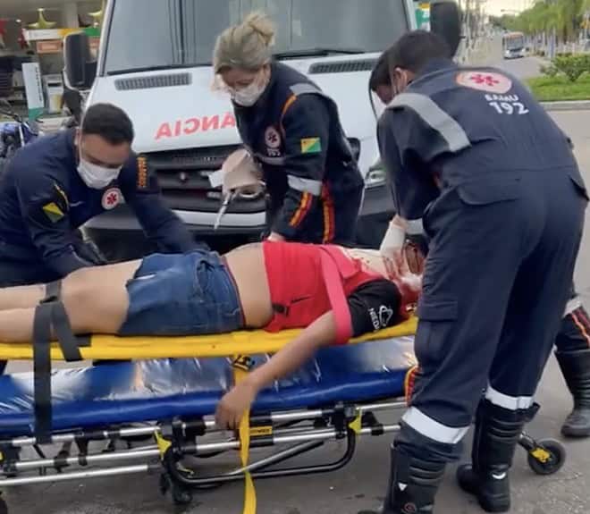 De acordo com os relatos, o motociclista não conseguiu contornar a rotatória devido ao excesso de velocidade, o que o levou a perder o controle e bater violentamente contra o poste. Com o impacto, o condutor sofreu múltiplas fraturas na face e pelo corpo e ficou desacordado no local.