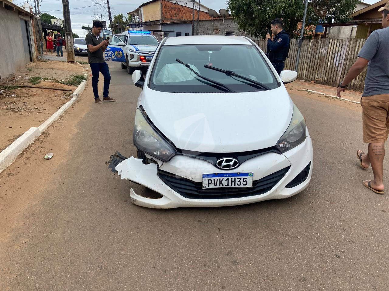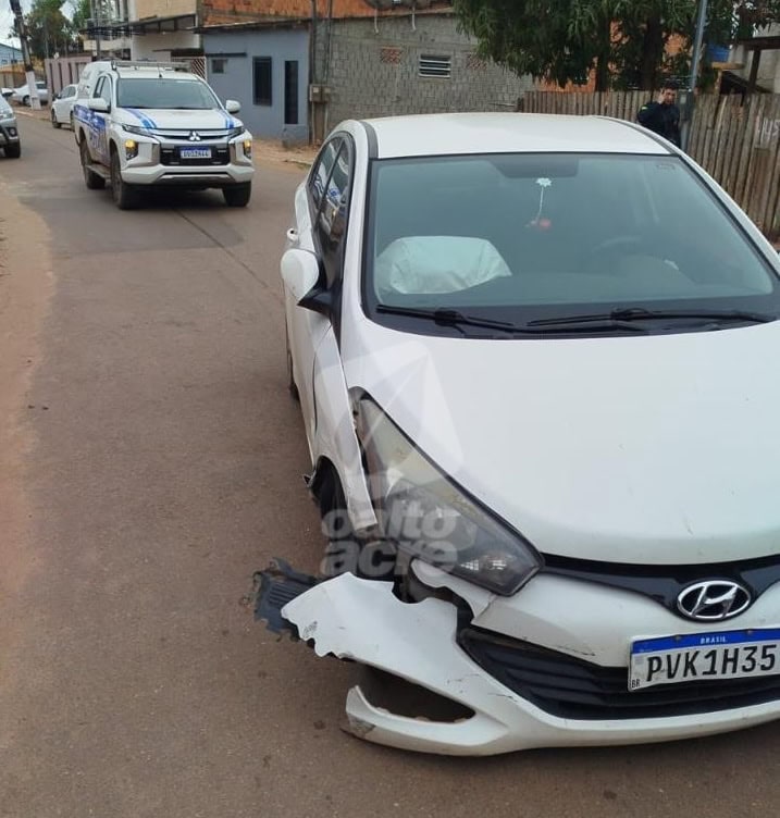 Menor de 17 anos, natural de Rio Branco, roubou um Hyundai estacionado em frente a uma sorveteria e colidiu contra veículos durante a tentativa de fuga; criança que estava em um dos carros ficou assustada.