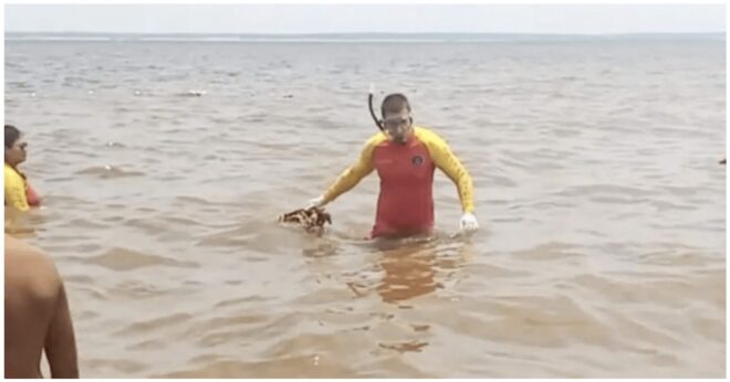 Banhistas encontraram um esqueleto humano na praia de Ponta Negra, em Manaus, por volta das 15h desta segunda-feira, dia 10. O resgate da ossada, feita por uma equipe de salva-vidas, foi acompanhada pelos frequentadores da praia, que gravaram as cenas e publicaram nas redes sociais.